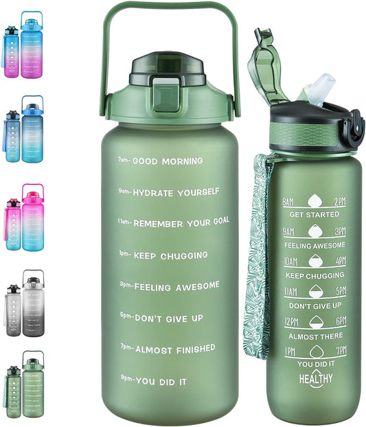 2 Pack Motivational Water Bottle, 27 oz & 64 oz Water Bottle with Times to Drink, Leakproof & BPA Free, Half Gallon Water Bottle with Straw for Office, Gym and Workout