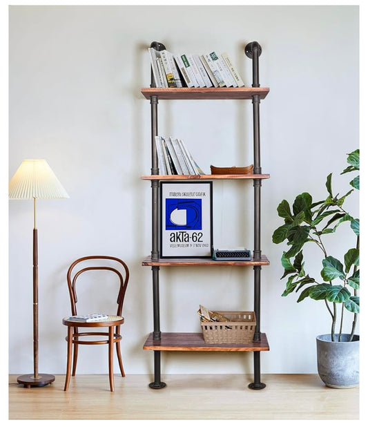 24 Inch Industrial Pipe Shelves-Wall Mounted Metal Pipe Wood Shelf-Rustic Pipe Ladder Bookshelf Bookcase-DIY Open Pipe Shelving