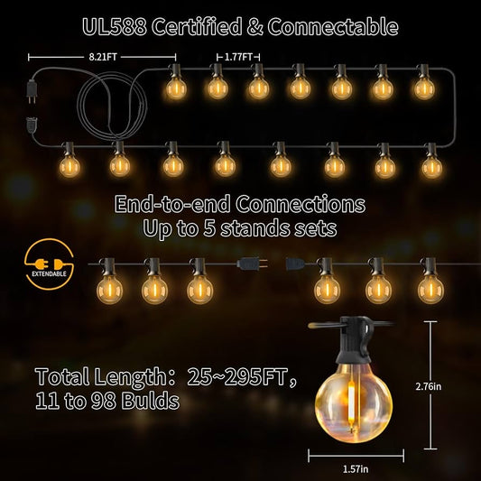 295FT Outdoor String Lights Outside Patio LED G40 Light with 90 Shatterproof Plastic Bulbs UL Listed Hanging Lighting for Backyard Balcony Bistro Decor