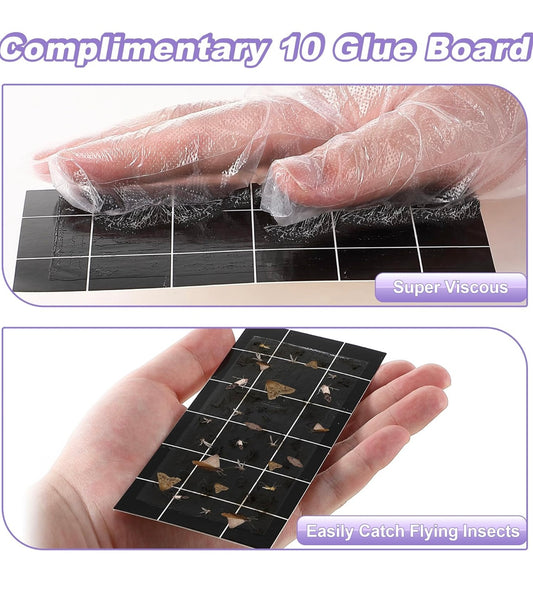 1 Pack with 10 Sticky Glue Boards Flying Insect Trap (1 Device 10 Glue Cards), Fruit Fly Traps for Indoors with UV Light, Insect Zapper for Fruit Flies Mosquito, Indoor Fly Catcher for Home