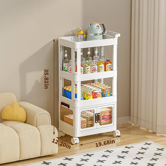 3-Tier Rolling Utility Cart with Drawer,Plastic Storage Bins with Lids,Multifunctional Storage Organizer with Plastic Shelf & Wheels,Storage Cart for Kitchen,Bathroom,Living Room,Office